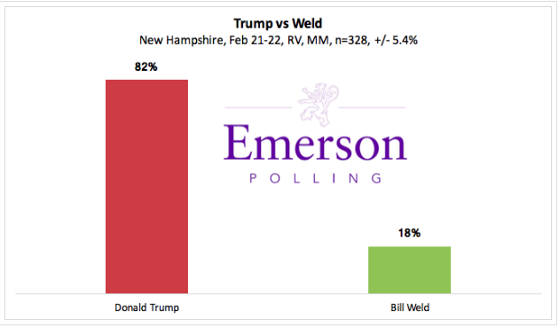 Trump leads Bill Weld among Republican primary voters 82% to 18%.
