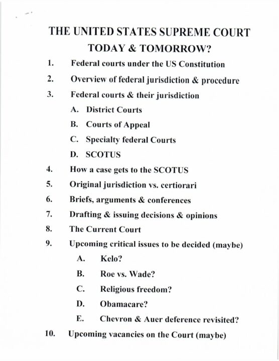 This past Thursday night, Norm Silber gave a talk on “SCOTUS: Today and Tomorrow”; a wide ranging discussion on the US Constitution. overview of our jurisprudence system, the hierarchy of the varying levels in our court system, the case flows within the system, the make up of the court, and upcoming issues that the Court will have to contend with both in cases and with itself.