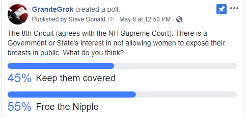 We’ve been a bit lax in the Facebook poll business lately. But when the 8th circuit ruled that States have an interest in not allowing women to expose their breasts in public, we figured we had to ask our Facebook Fans what they thought?