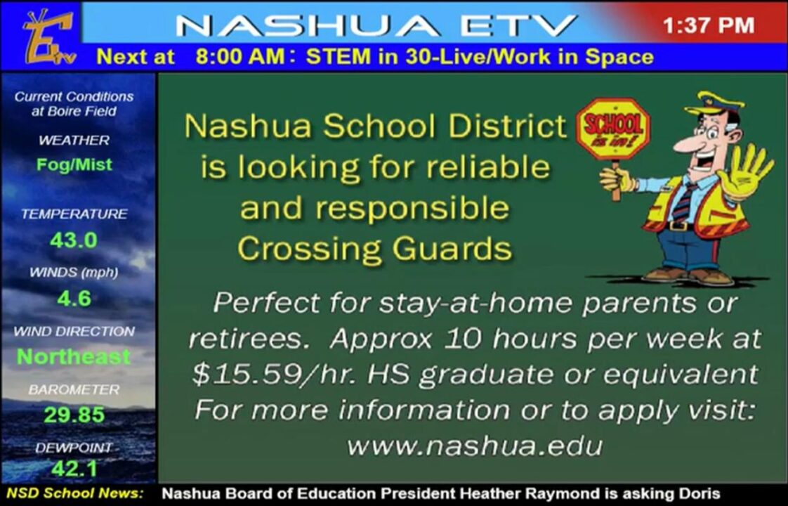 It is featured on the district website, and references to it appear on the screen crawl on Nashua Cable access television. (screenshot one, two, and three.)
