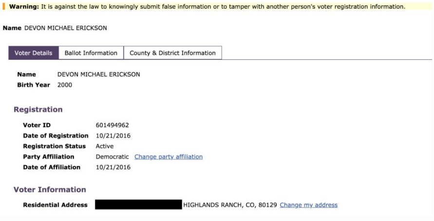 Colorado shooter Devon Erickson is a registered Democrat (as confirmed on the Colorado Secretary of State website). pic.twitter.com/s3EuBR0OYf
