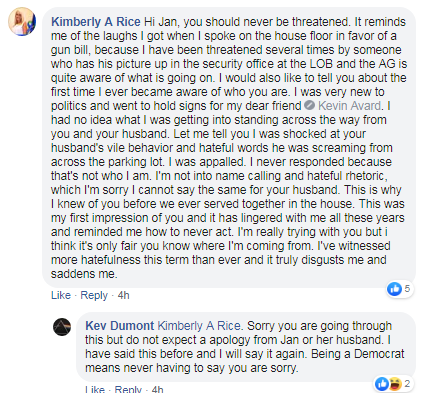 So, because she was holding a sign for Kevin Avard at the polls, Jan Schmidt’s husband blew his verbal stack (who had also served in the NH House at the same time as Jan Schmidt SIMPLY because of that? Or was it a double mortal sign as she was also a NH State Rep – but a Republican? So while her husband was losing his mind through his lips, did Jan make any attempt to silence REAL hate speech (and aren’t we, according to Progressive dogma, #BelieveAllWomen)? Did she even think to extend a “professional courtesy” to her fellow Legislator even if she was from the political “wrong side of the tracks” (from Schmidt’s perspective) and try to mitigate the harm and atmosphere? Did she see another woman in distress and try to run to her aid?