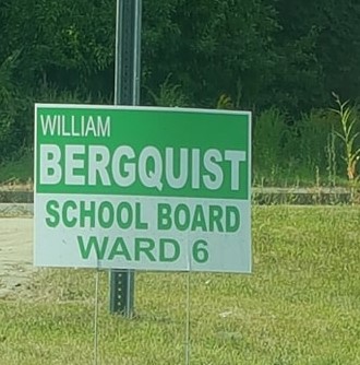 . William Berquist is a Democrat running for the Board of School Committee in Manchester. I’ve been told he had a few campaign signs on traffic routes to the event that we’re being taken down today. Not by the city employees but what looked to be a campaign volunteer.