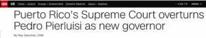 (CNN) Puerto Rico’s Supreme Court on Wednesday ruled that the oath given to former Gov. Ricardo Rosselló’s handpicked successor was unconstitutional, clearing the way for Justice Secretary Wanda Vázquez Garced to become governor and prolonging the US territory’s political crisis. The unanimous decision said last week’s swearing in of attorney Pedro Pierluisi was unconstitutional because he had not been confirmed as secretary of state by both chambers of the legislature. The court said the ruling will take effect at 5 p.m. to ensure an orderly succession. Pierluisi was expected to replace the disgraced Rosselló, who stepped down as governor following weeks of protests. Rosselló named him Puerto Rico’s secretary of state, placing him next in line to become governor.