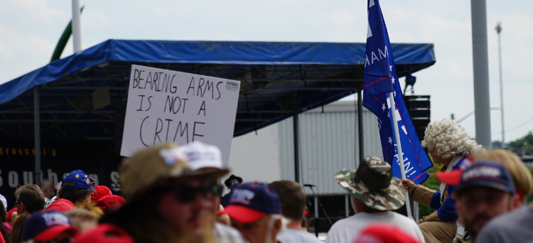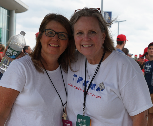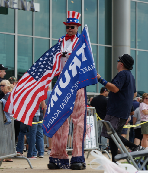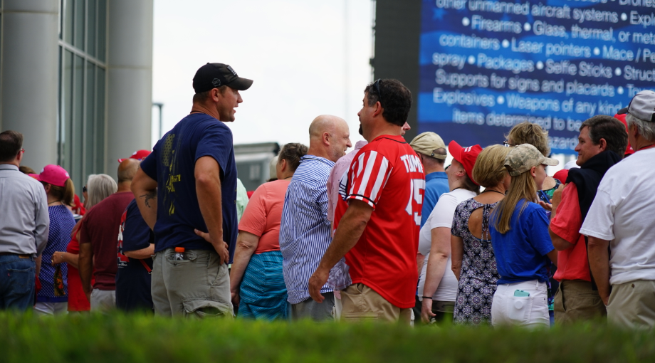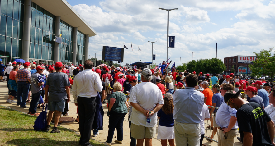 Rally goers couldn’t bring signs into the rally but that didn’t stop them from holding them outside while they were waiting in line: