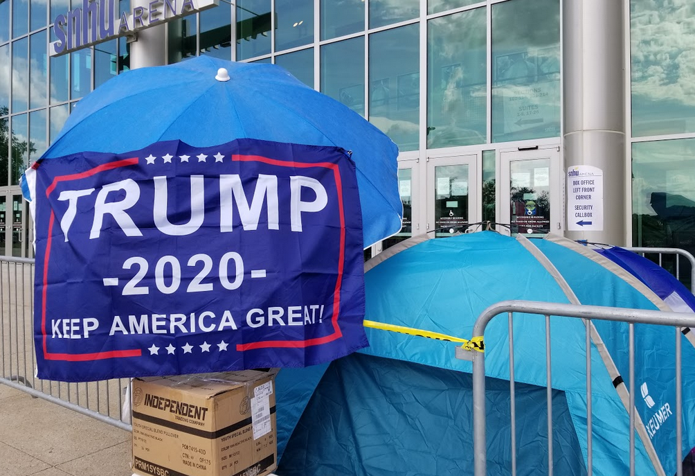 If you drive by the SNHU Arena in Manchester right now, you’ll see that Trump supporters have already started lining up for his rally tomorrow night. These people started lining up more than 24 hours in advance of the rally. They are literally camping out and will definitely have their choice of seats when the crowd is finally let into the venue: