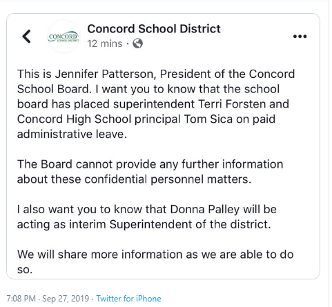Principal Tom Sica and Superintendent Terri Forsten have been put on paid administrative leave.