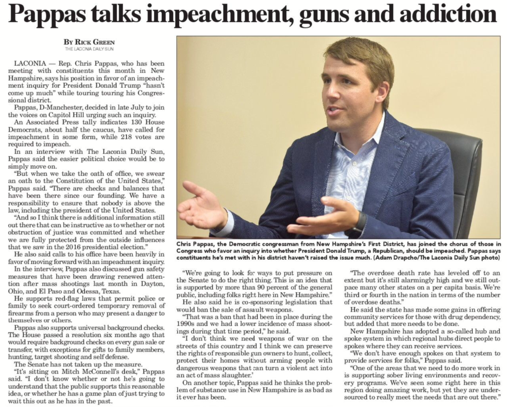Regarding so-called “red flag laws”, Rep. Pappas is supporting a redundant law. Laws already exist allowing the detention and evaluation of someone who appears to pose a threat to herself or others. Taking someone’s guns ex parte violates due process, or is that not necessary anymore? Rep. Pappas says that he swore an oath to the Constitution. Please keep that in mind when you support unconstitutional laws, sir.