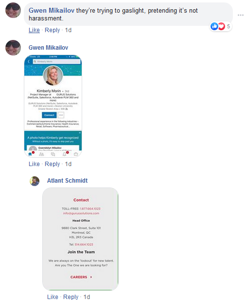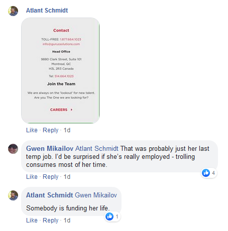 Jan Schmidt’s husband Atlant took it a step further and took the information from one of my previous jobs and then proceeded to post information on how to contact them, thinking it is my current employer: