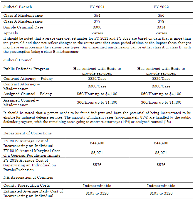 This bill contains penalties that may have an impact on the New Hampshire judicial and correctional systems. There is no method to determine how many charges would be brought as a result of the changes contained in this bill to determine the fiscal impact on expenditures. However, the entities impacted have provided the potential costs associated with these penalties below.