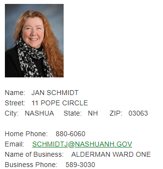 She’s also a Nashua City Alderman – and GUESS WHAT?  Not only would the NH House be guilty of Doxxing under her law but also the City of Nashua: