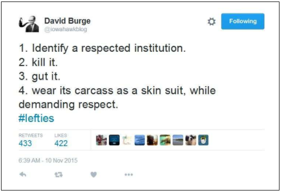 So, the UL is going to take stringers trained to report in liberal outlook. Great, just Great! I guess this from Iowahawk pretty sums up what happens to formerly Conservative organizations that refuse to codify their Conservative credos: