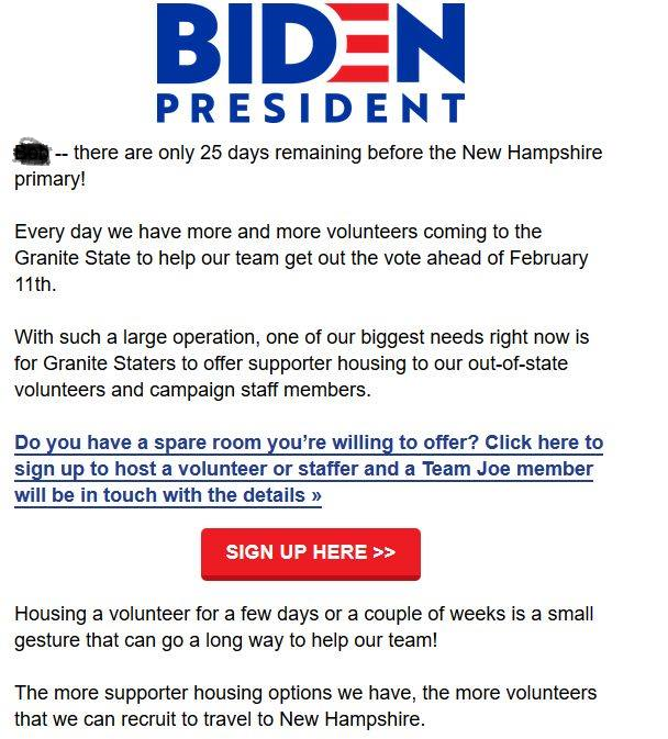 Back in Feb of 2016, the Sanders and Clinton campaign accused each other of voter fraud. I’m sure they were both guilty. This time around the Biden campaign is looking for temporary housing for out of state staffers (who will probably vote here). For Joe Biden.