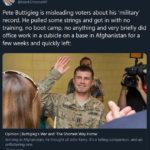 Buttigeig participated in an intelligence schools consuming all of 13 weeks, Total active duty racked up before Afghanistan is under two months. He spent five months in Afghanistan as a “fobbit.” Buttigeig wrote,