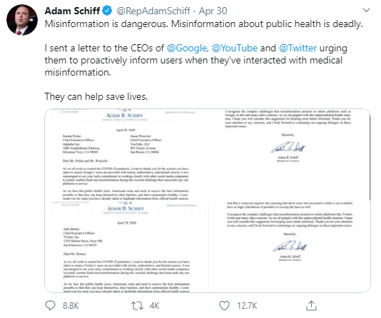 Mr. Trump was more popular after your work than before, so I’d say yeah – lying could be a problem. But the problem with liars is they can’t stop. To that end, Shifty-Schiff says he has sent letters to Big Digital. The point? Please remove any information on your portals with which I disagree!