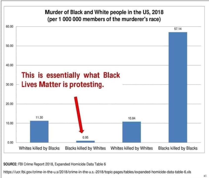 So, as the Collective-Left attempt to tie anyone they can (mostly, on the right) to racism, let’s stop and take a breath. And then ask Democrats why (if Black Lives Matter) they have focused their ire and energy on less than 1% of black murders (by whites – and the tinier percentage of those that are by white police officers) and not the 57% of all murders in the US that are black on black?