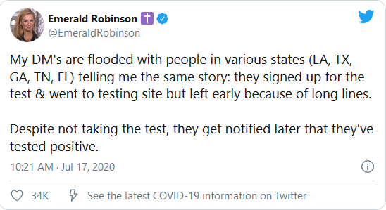 Othe problems continue to mount as well. States with false positives, vehicle accidents with the cause of death declared as COVID19, and even this tweet, which is startling.