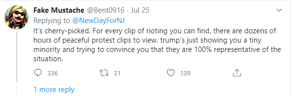 In other words, what the institutional media is representing is not 100% of the situation. There is a lot of violence and destruction and chaos. People, including first responders, are getting injured and killed. Citizens, civilians, are being harmed, and their property is being destroyed. Public, taxpayer paid-for property is being damaged every day.