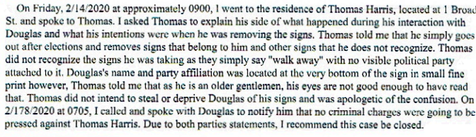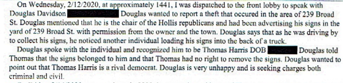 Police Report Thomas Harris (1) - Sign stealing Hollis