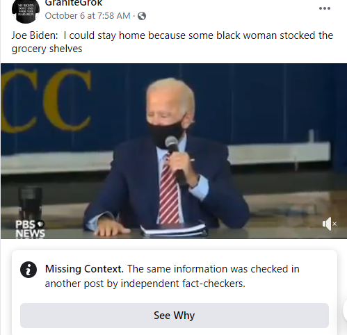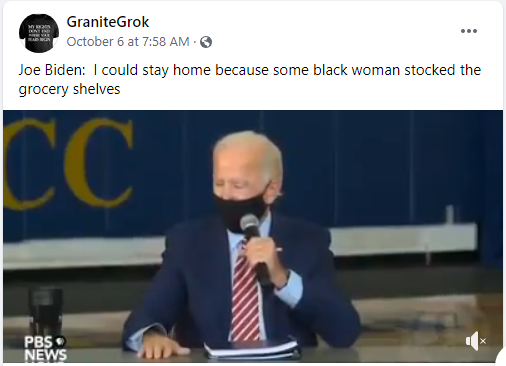 After posting this video clip on Facebook of Joe Biden saying he got to stay in his basement because black women stocked the grocery shelves, …