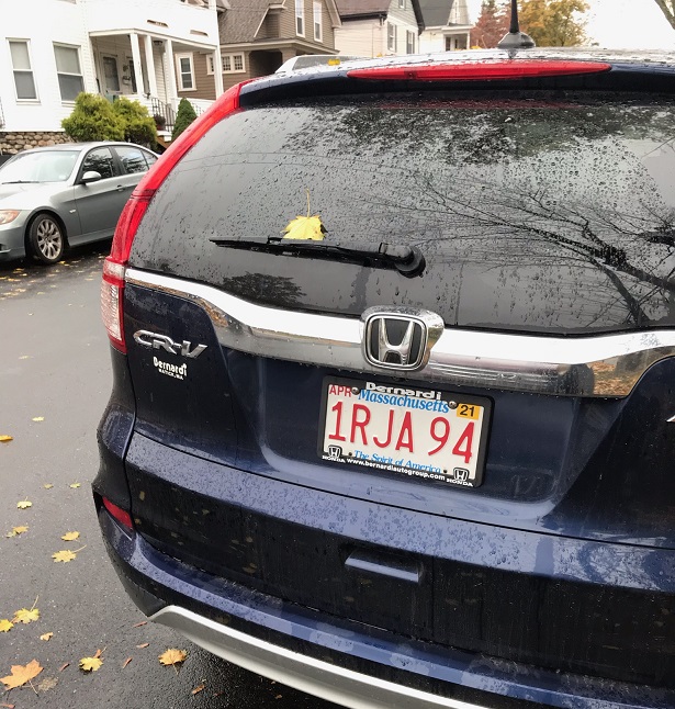 Lavanya appears to be driving a car with MA plates. It is seen parked outside the 436 Walnut St. rental. The license plate cover is from a Honda dealer 16 miles from Boxborough. So Lavanya’s MA. licensed car must be the dark blue Honda CR-V: