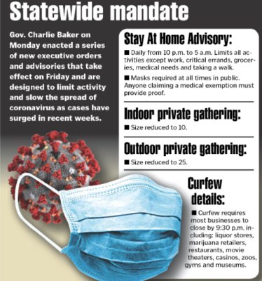 In an effort to destroy its already-fragile economy Maskachusettes Gov. Charlie Baker has ordered fresh lockdowns statewide. Residents are being told to stay home from 10 pm-5 am except for emergencies, and businesses have been ordered to close by 9:30 every night.