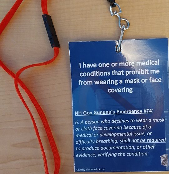 So, we’ve all been talking about Gov. Sununu’s Mandatory Mask Emergency Order and Grokster Ian’s finding of the builtin loophole that now changes the definition of “mandatory” to “toothless”:
