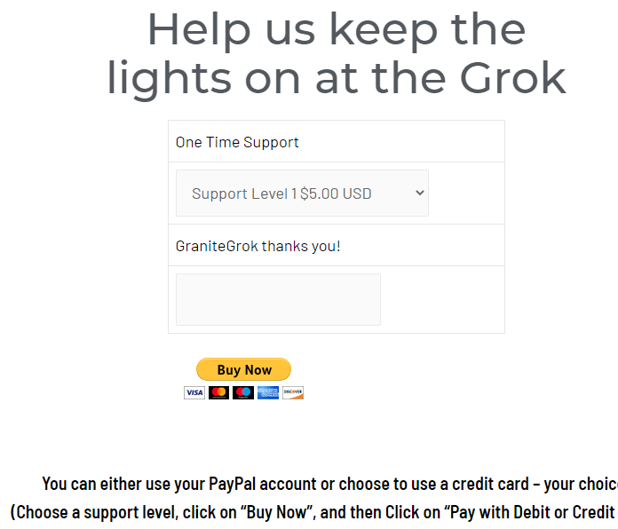 And remember – we have no payroll as we’re all volunteers; every dollar goes to the feeding and upkeep of GraniteGrok itself.