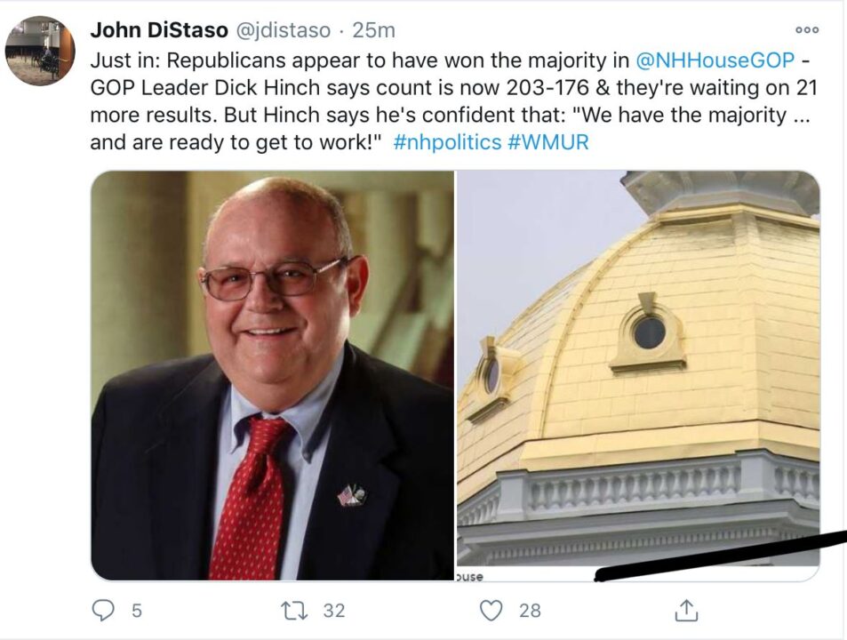 As reported earlier this morning, the Federal elections went wrong in the Granite State, but New Hampshire Republicans did very well in local elections. While still unconfirmed, we flipped the Executive Council and State Senate, and it looks like the NH House as well.