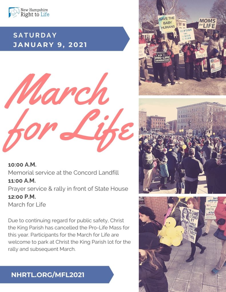 NH Right to Life will be holding their annual March for Life in Concord on Saturday, January 9.