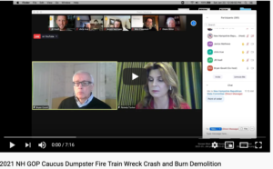 Virtual meetings enable secret government, allowing the chair to control what is said and not said. Whoever controls the dialogue, controls the outcome. For an example of how badly a Virtual Meeting can go wrong, view this 7 minute video clip of the recent NH GOP Annual Meeting:
