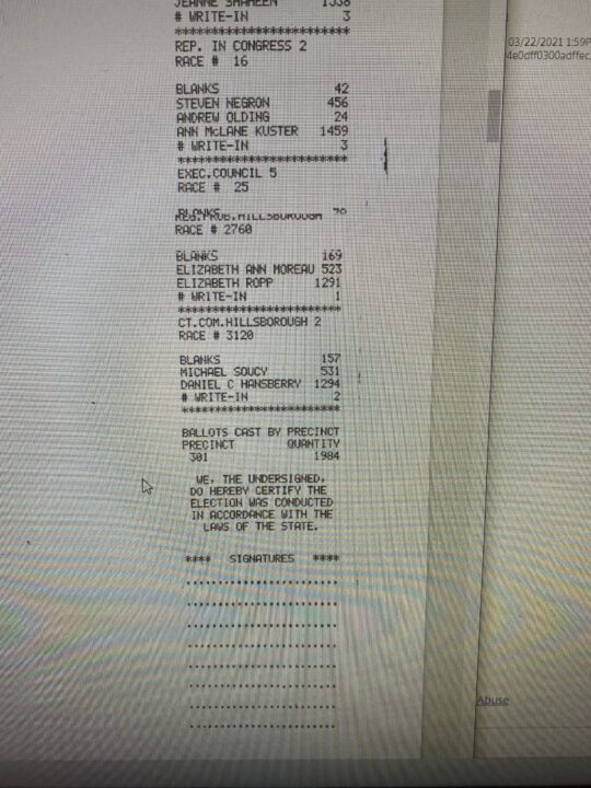 #2. This Nashua tabulator machine slip has no signatures. It’s not an official document without signatures.