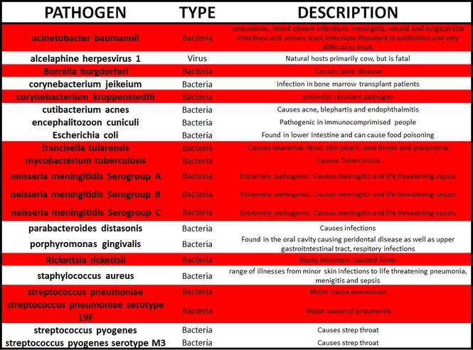 The analysis detected the following 11 alarmingly dangerous pathogens on the masks: