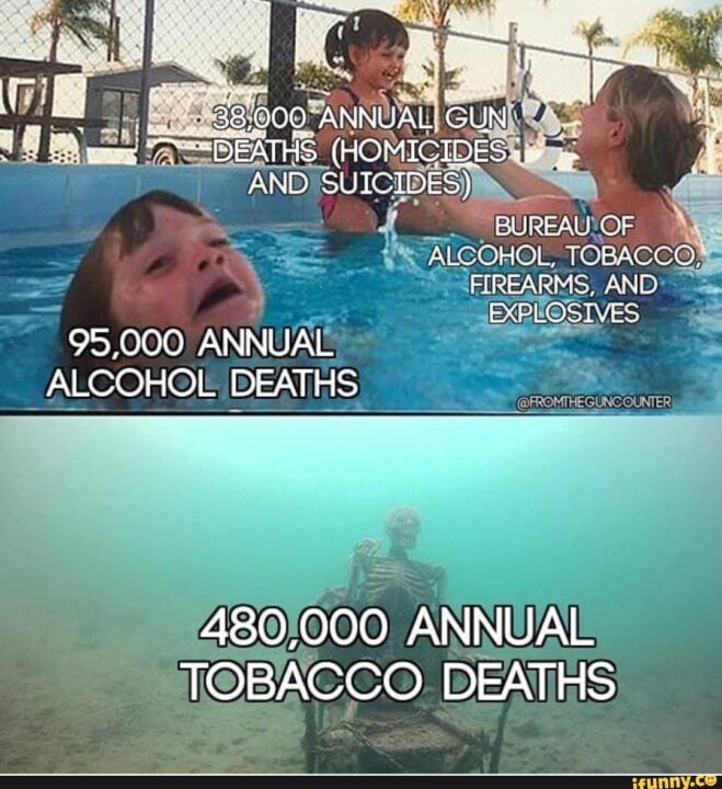 And while true, the police state they want in the name of common sense (gun laws) will end in more gun deaths, tobacco deaths (or a replacement), and alcohol deaths because life and death have nothing to do with any of that. It’s about politics and power.