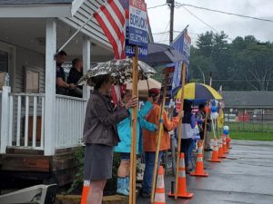 On July 13, 2021, we began to arrive at the Danville polling location an hour before doors opened to voters. Over 30 volunteers organized by the GIP showed up on Election Day over a 12-hour period, with no less than ten volunteers covering any given hour, and sometimes 18 volunteers during the last few hours. We set up tents, constructed dozens of pole signs and a small pro-Borucki troupe danced and sang to patriotic tunes along the roadside encouraging residents to vote.