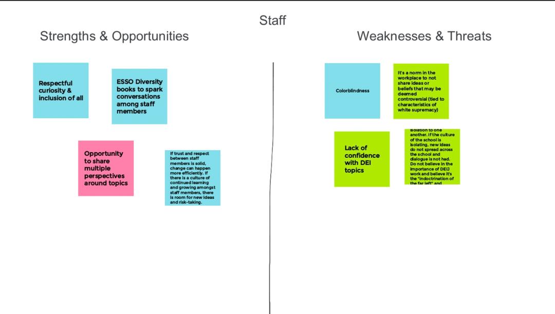 This brainstorming session never focused on how to make sure that children of color are served well in the district by working to make sure that they are learning the core academic content. Nothing in this brainstorming session is focused on uplifting the academics or literacy of the student body. It’s all focused on shaming parents who disagree with their radical political agenda.