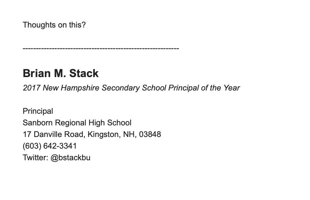 Recently Steven Krzyzanowski, Assistant Principal at Sanborn Regional High School sent this message to the staff: