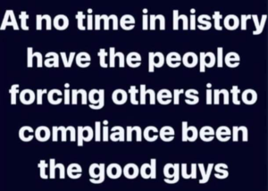 I won’t drown you in links, but if you are AWARE, you see the coercion being ramped upwards, tightening the noose around those who don’t want The Jab. This is becoming as “voluntary” as a woman who “volunteers” to participate in an amorous interlude with a knife at her throat.