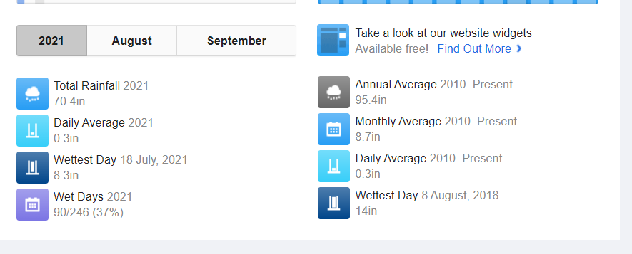 Their 2021 numbers and their average annual numbers are both 24-month totals. I’m not sure how they managed that, but they did. We have not received 70.4 inches of rain in 2021 and our annual average is not 95.4 inches. Their over averages, all based on these incorrect annuals, are also incorrect.