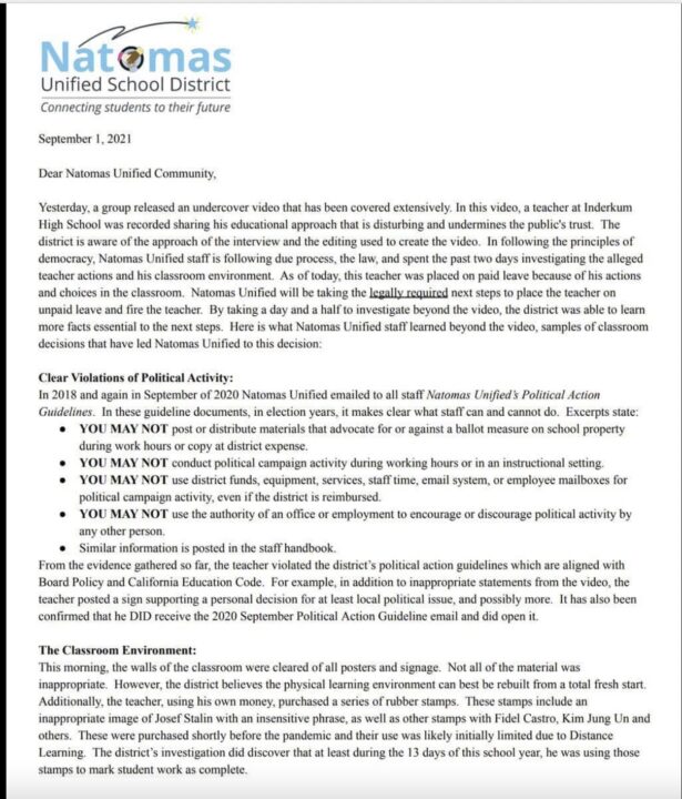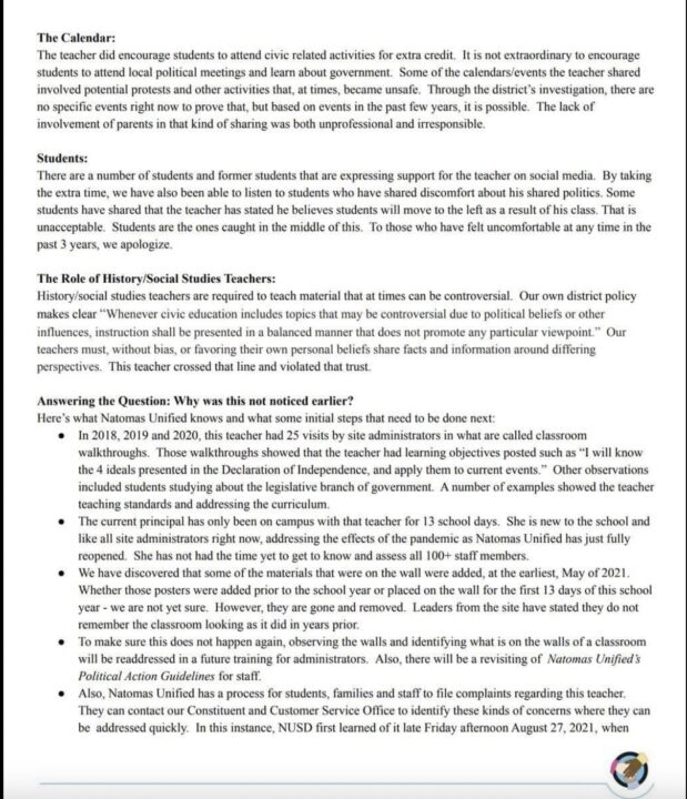Here is how the Sacramento Superintendent replied to the community. Not only should the teacher be fired, but the administrators had to have known what was hanging on the wall of that teacher’s classroom. They need to be fired too.