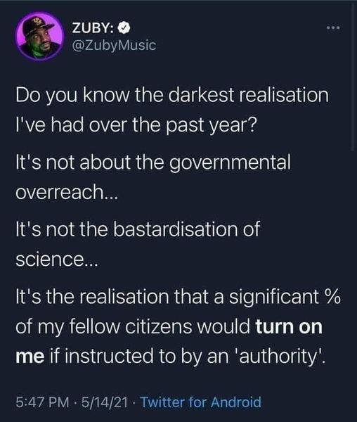 Consider Howard Stern saying that the unJabbed need to be denied hospital access. Like myriad doctors denying health care to those who exercise my-body-my-choice. Like the idea that the unJabbed can’t be allowed to leave their homes. Examples beyond imagining. Just remember, they believe they’re doing good by punishing those they have been assured are evil & dangerous… and enjoying that delicious treat: