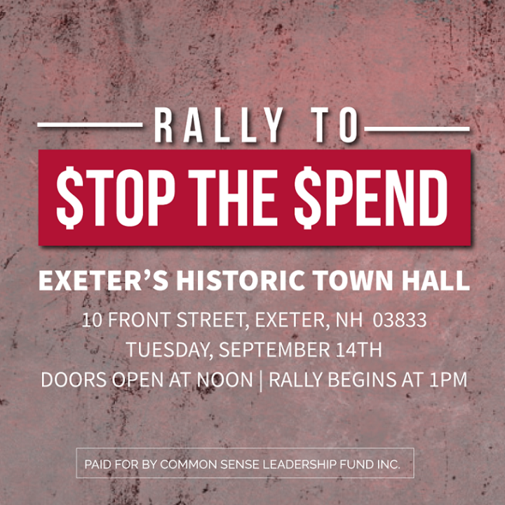 Rally to $top the $pend: Expected Speakers include: NH GOP Chair Steve Stepanek, AFP/NH Executive Director Greg Moore, Candidate for US Senate and Ret. General Don Bolduc.