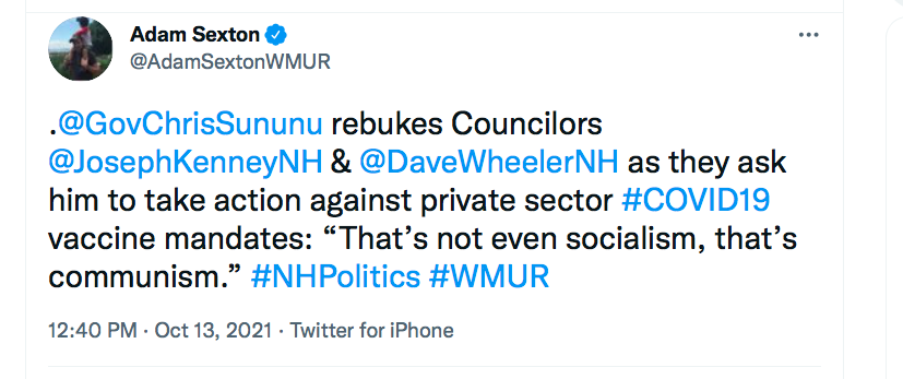 So … according to Chris I-Am-The-Constitution Sununu … Governor Abbott of Texas and Governor DeSantis of Florida are “un-American” “communists.”