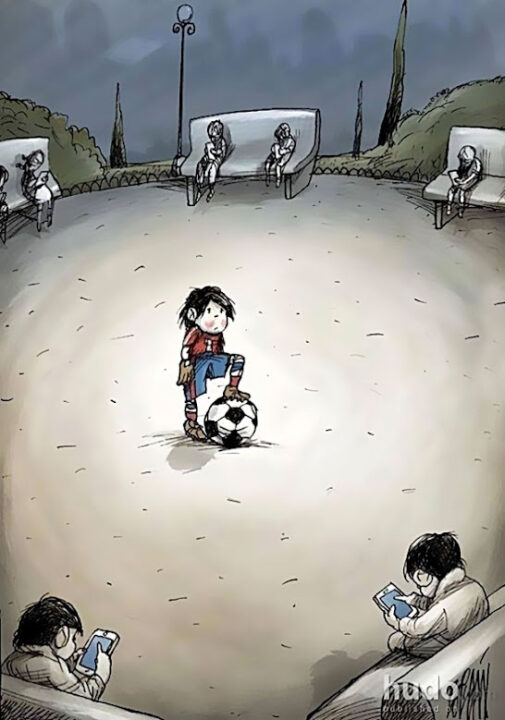 So it’s no wonder that people are disconnected from belonging. All over, every time we go out, I see entire families silent with faces in phones. Kids in particular are noses-in-phones all day as pacifiers… handed their electronic drug from infancy to the detriment of their physical development: