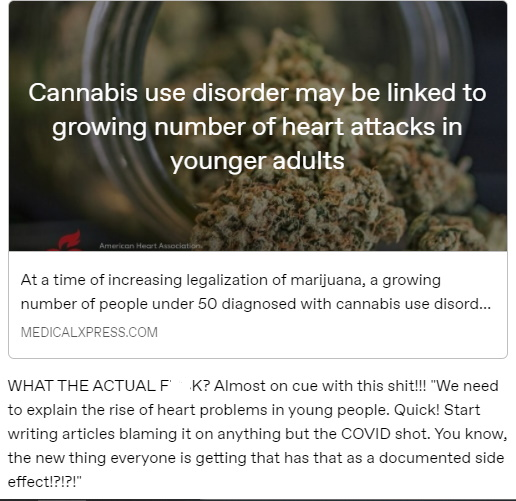 Barring something in the water, or air, or food, or whatever, how do you explain these instances – among legion – of people who are explaining away athlete heart attacks, kids’ heart attacks, etc.? Because it feels like an utterly desperate attempt to avoid facing the mRNA elephant in the room.