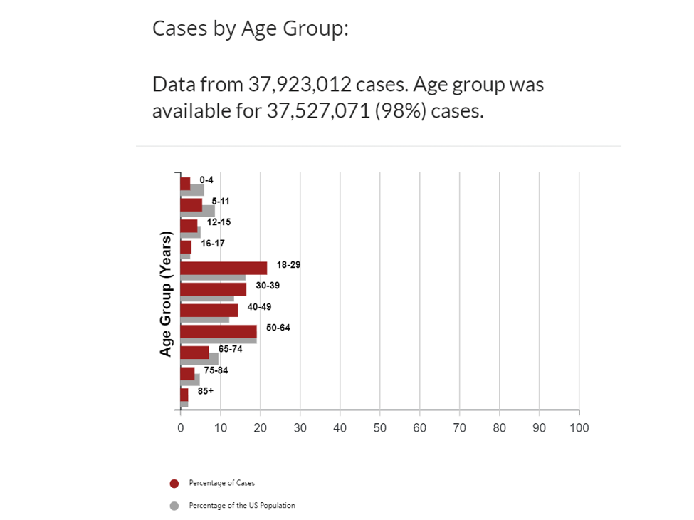 If you look closely, the percentage of reported cases to population is only higher 18-49 age groups, and that’s probably because of overtesting and false positives, which the COVID Karens won’t even consider, so let’s keep it simple.