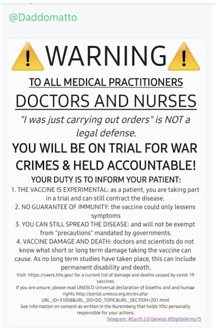For all the hullaballoo about The Jab being “approved”… it isn’t, and as I understand it cannot be until 2023 at the earliest. Thus it is experimental, and the Nuremberg Code applies.
