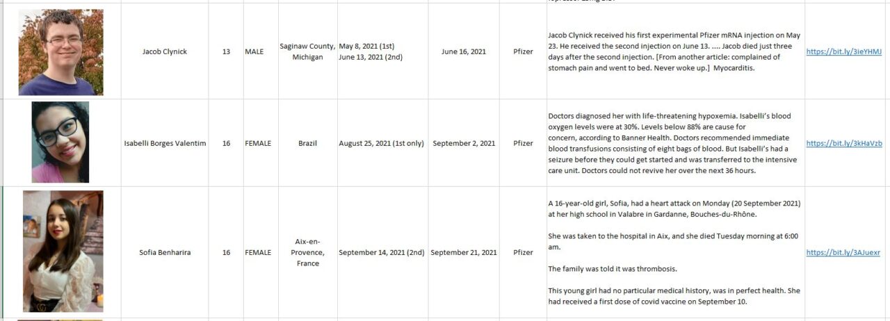 And if there’s even a chance this is true, no person with a soul can give the Jab to a kid. A sample of Project Dread’s database: