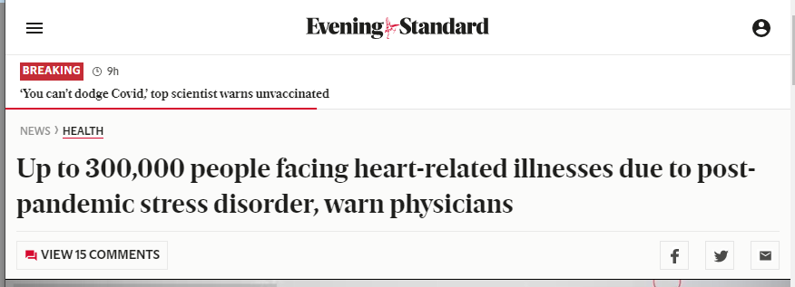 The vigilant Steve Kirsch has uncovered a new narrative. And I guess this is in case blaming myocarditis on Omicron doesn’t carry the water. Someone has invented Post Pandemic Stress Disorder, a symptom of which is “heart-related illness.”