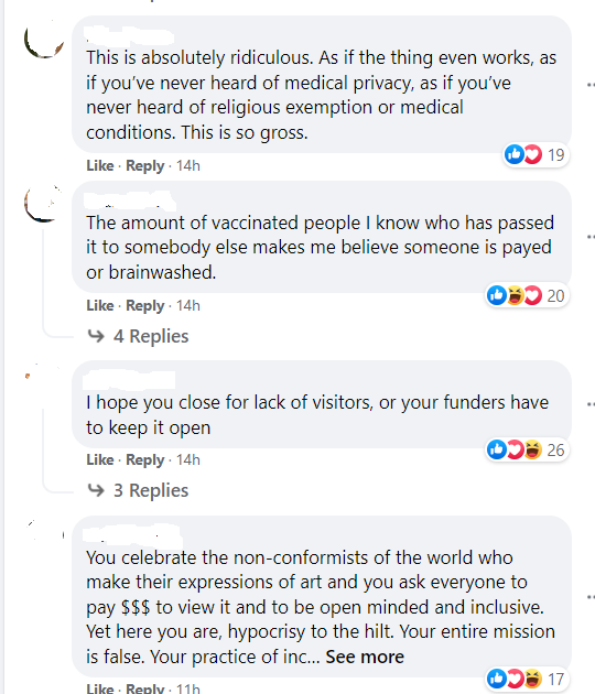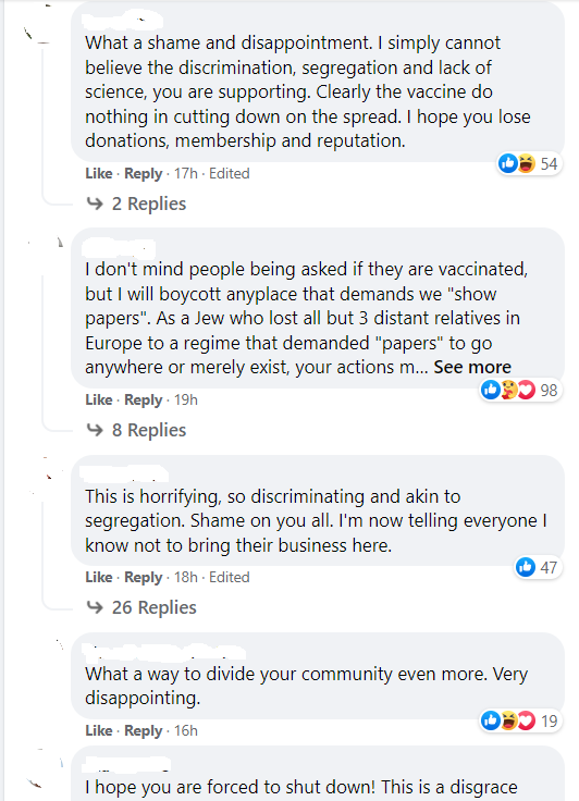Yes, there are a few people who showed some support for the policy. Fellow COVID-Karen Flavored Kool-Aid Drinkers, if you like. But the overwhelming reaction was very negative when I scrolled the thread.